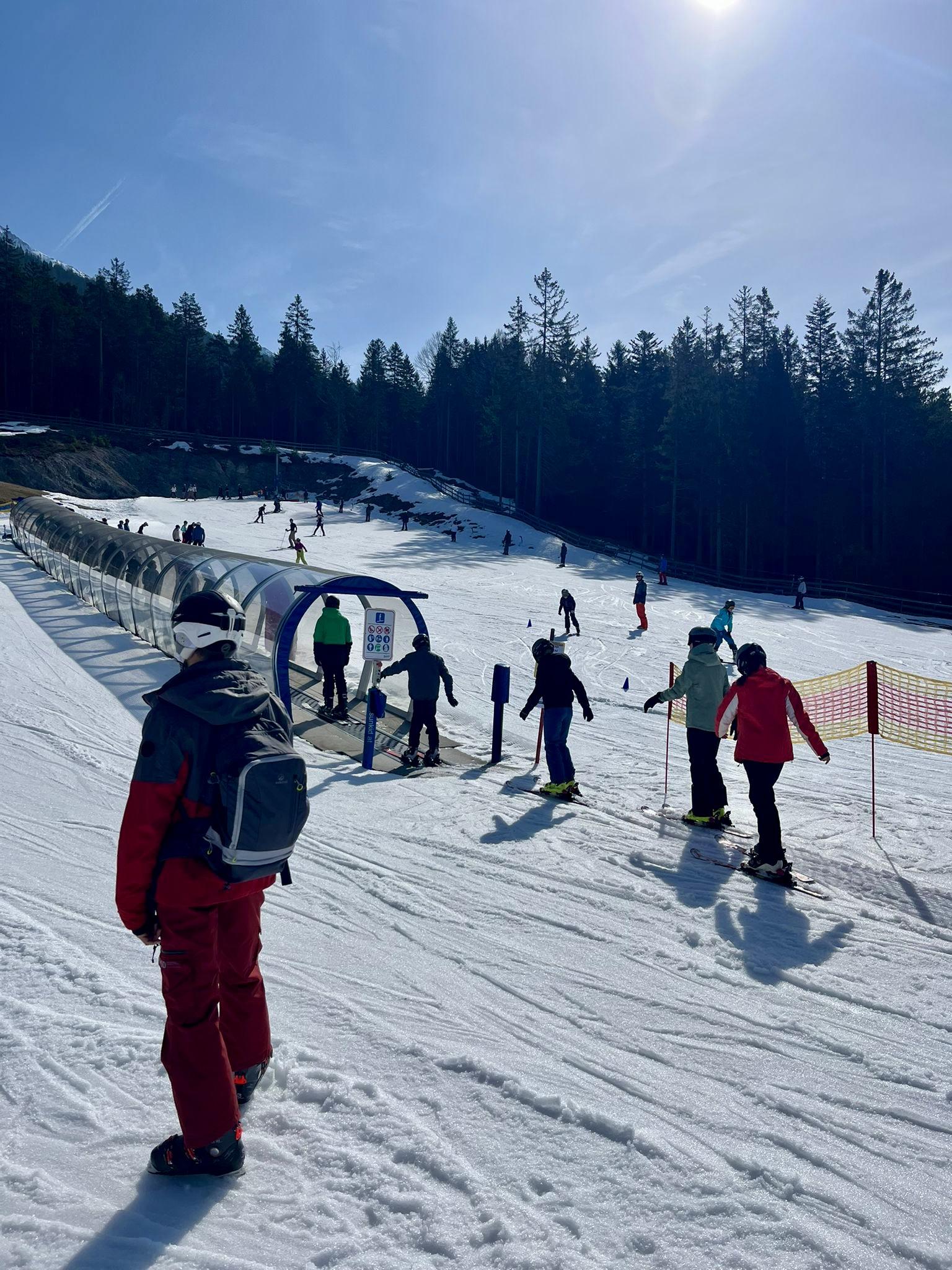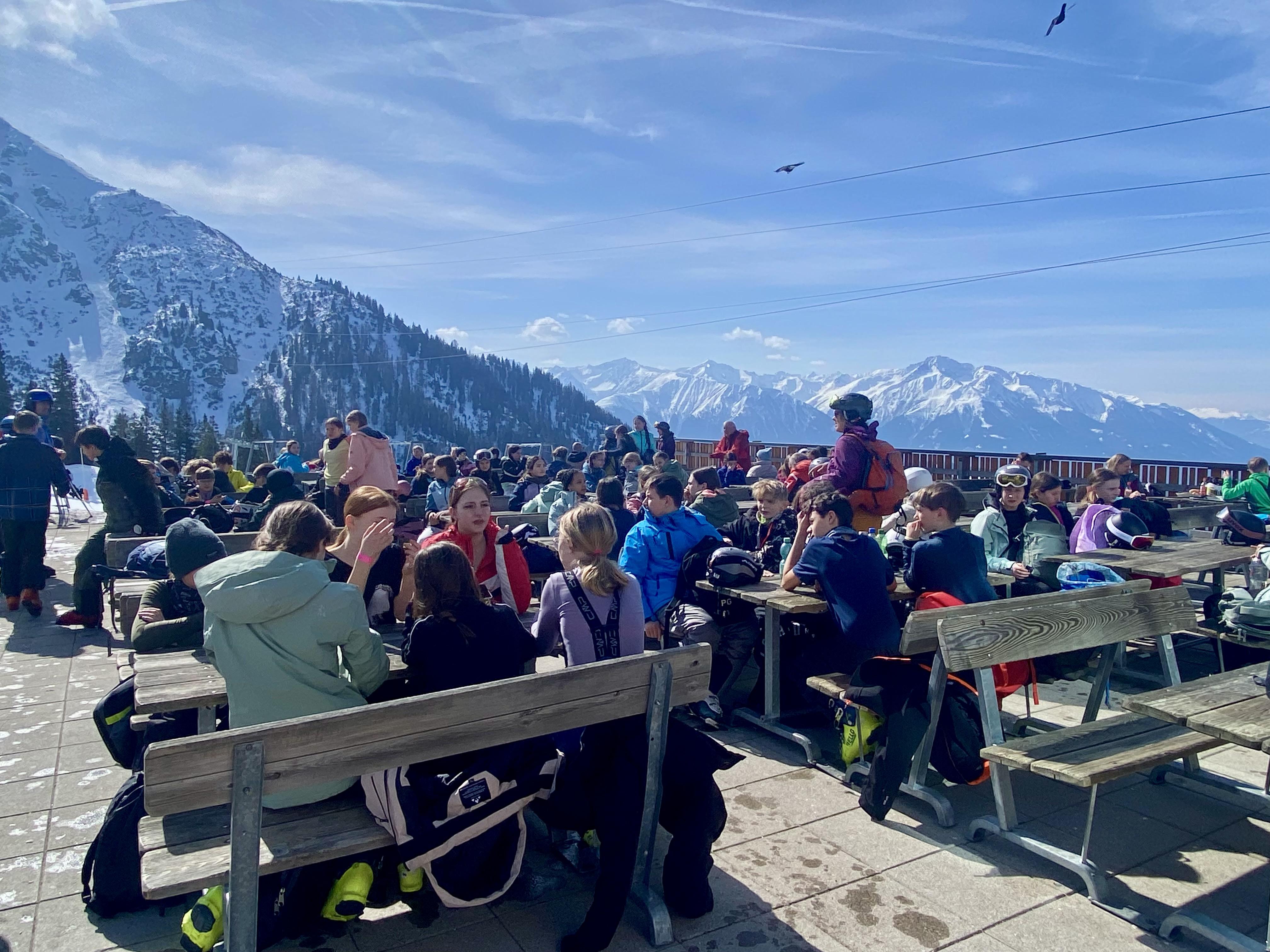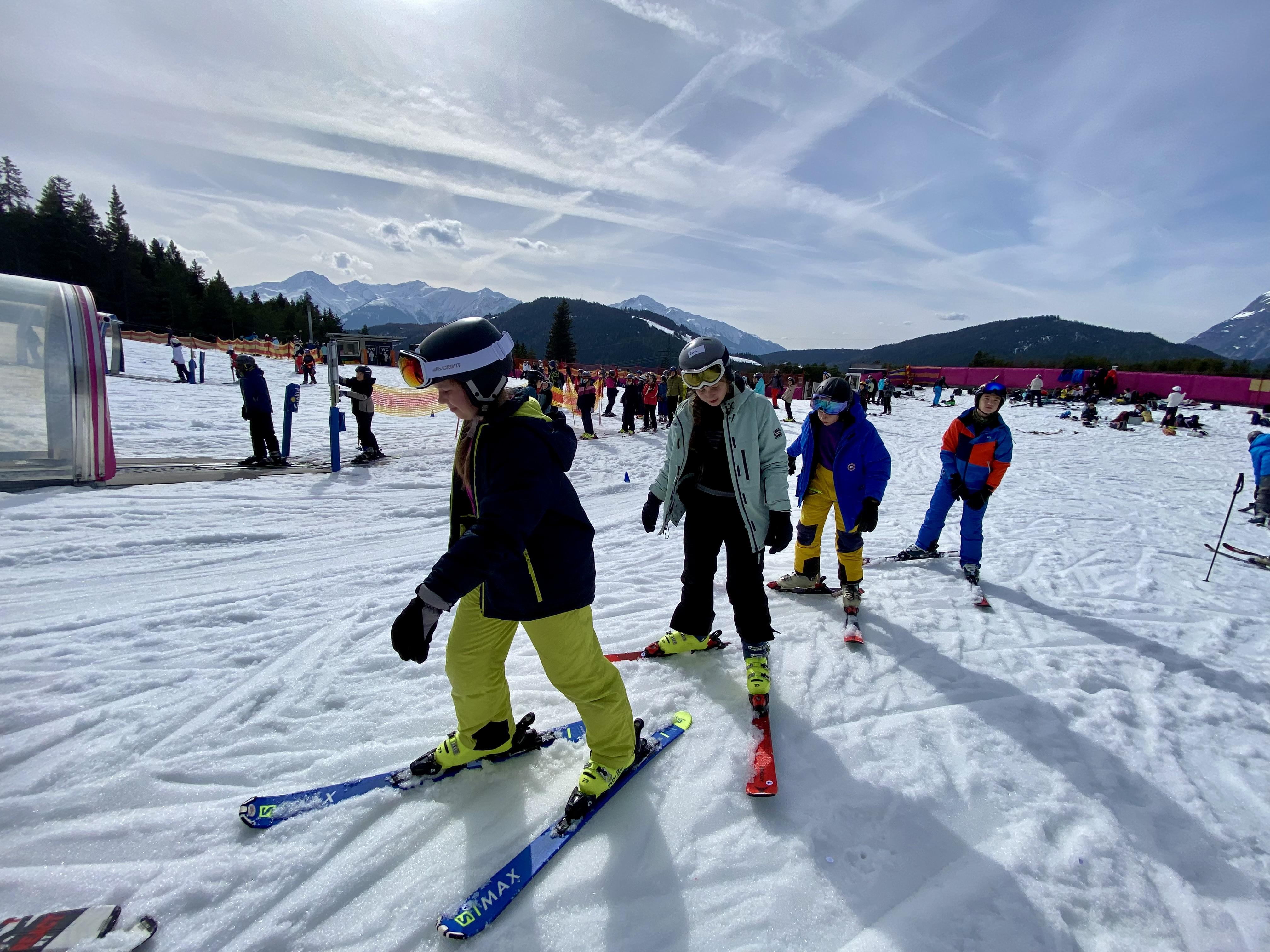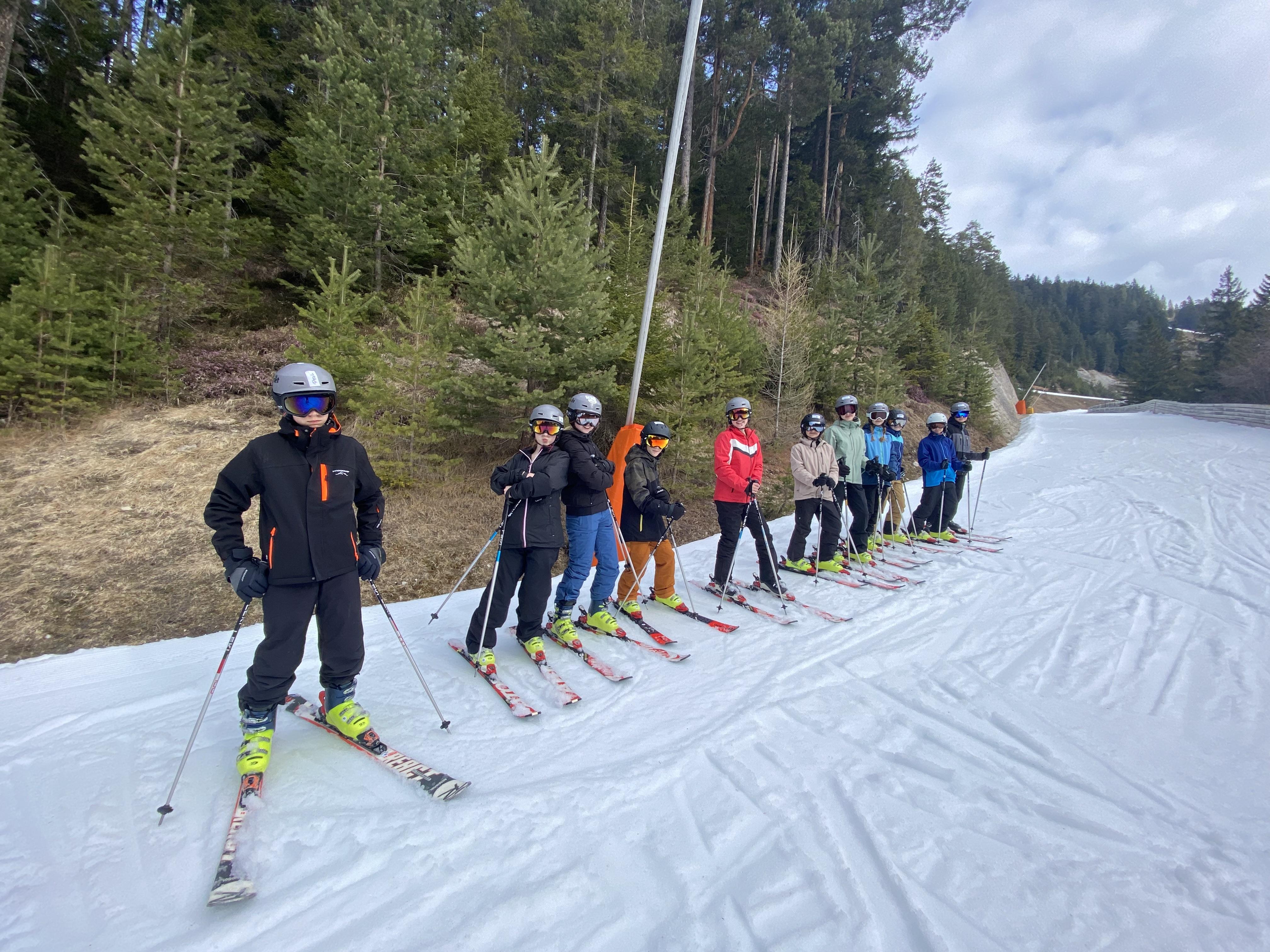 Mit viel Vorfreude und noch mehr Gepäck machten sich 101 Siebtklässler Anfang März gemeinsam mit ihren zehn Lehrkräften auf den Weg nach Seefeld in Tirol. Für eine Woche tauschten sie ihre Lernlandschaft gegen verschneite Skipisten und Schulbücher gegen Ski, Helm und Skibrille.