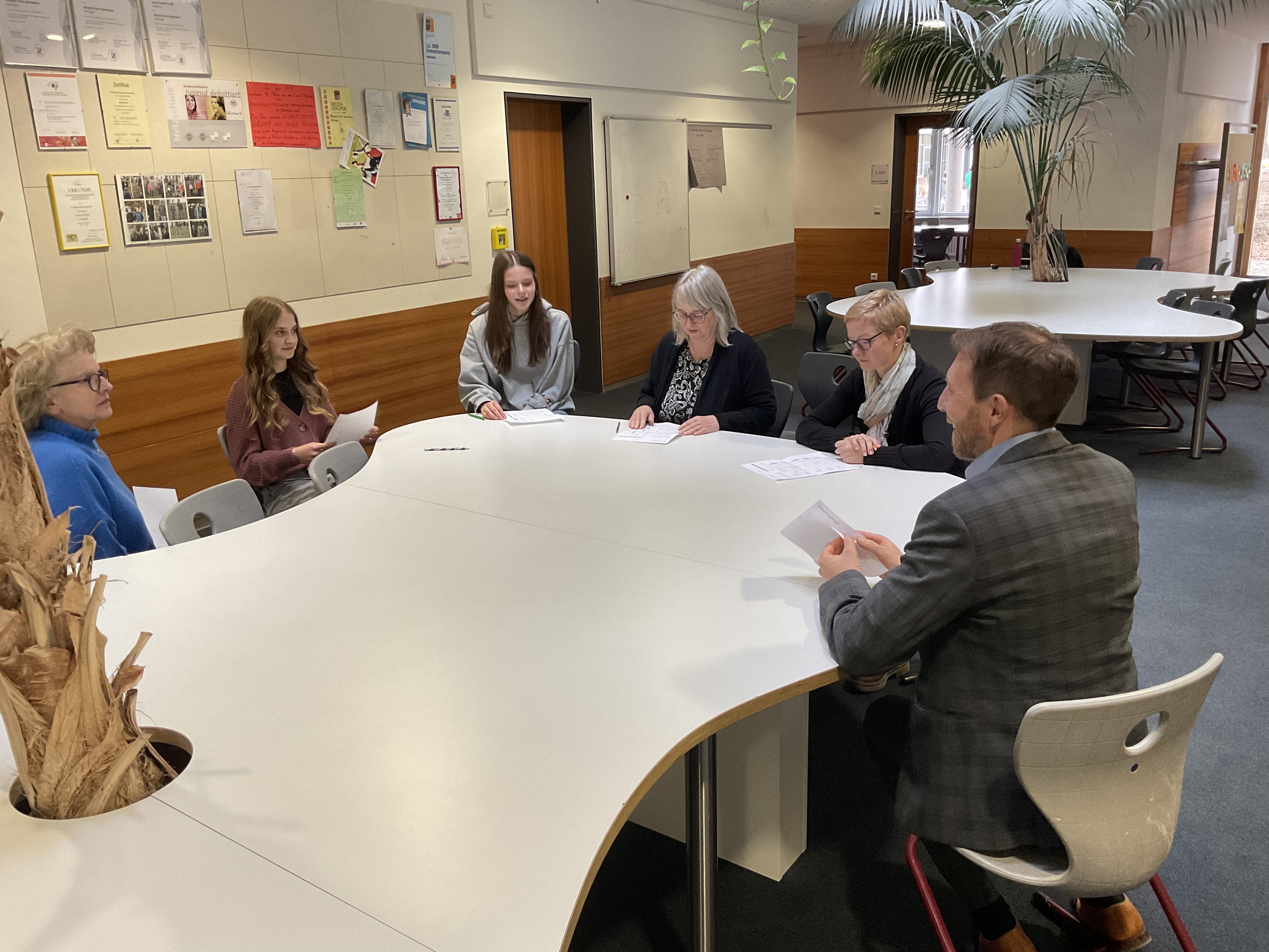 In diesem Gremium begrüßte Teresa Herrmann von der Fachschaft Deutsch die Vorjahressiegerin Verena Dollinger, die Schülersprecherin Jette Gerstmeyr als Vertreterinnen der Schülerschaft, Kathrin Kamm für den Elternbeirat sowie Kerstin Pflanz, Leiterin der Stadtbibliothek Oettingen, und Bürgermeister Thomas Heydecker. Elisabeth Hertle von der Buchhandlung Wilhelm in Oettingen gehörte ebenfalls zur Jury und stellte wie in den Vorjahren die Preise für die Teilnehmer zur Verfügung.