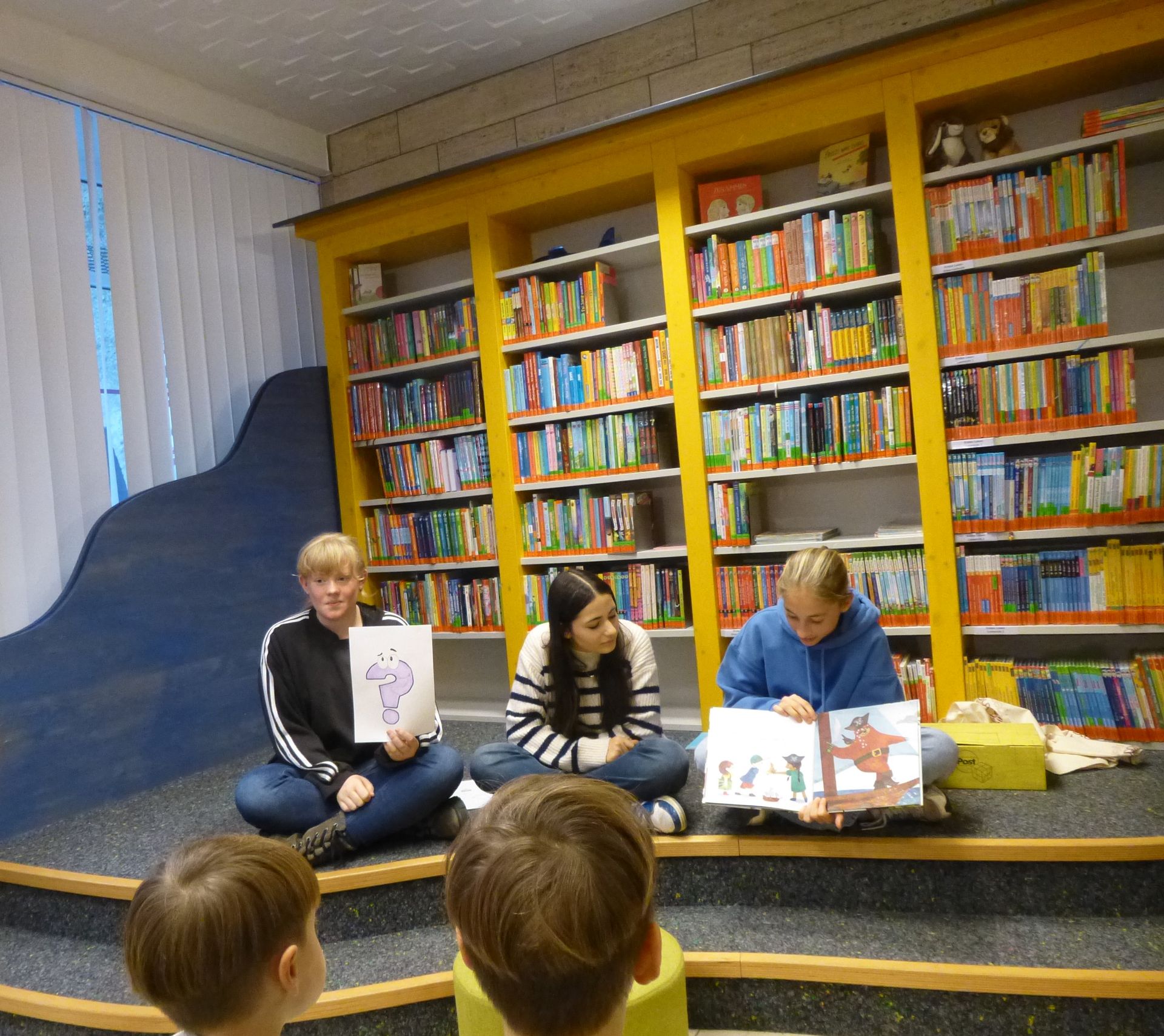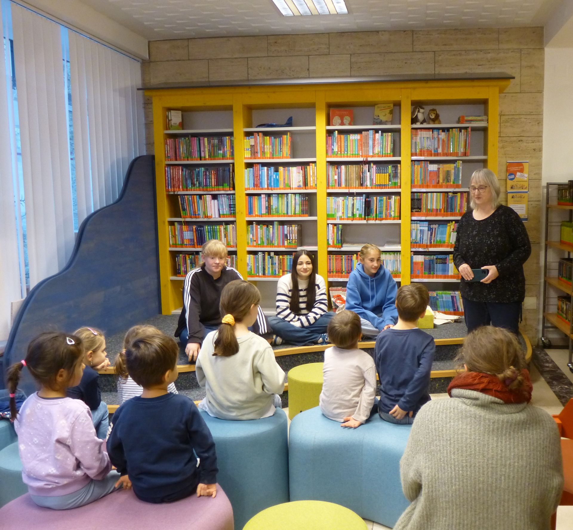 Einsatzorte waren die Grundschule, der katholische Kindergarten, der Waldkindergarten, das Altenheim, die Tagespflege, die Einrichtung Diakoneo sowie die Primarstufe der Montessorischule. Im Gegenzug besuchten Schülerinnen und Schüler der Montessorischule eine fünfte Klasse und präsentierten dort Auszüge aus ihren Lieblingsbüchern. Am Nachmittag setzten drei Schülerinnen die Vorleseaktion in der Stadtbibliothek fort.