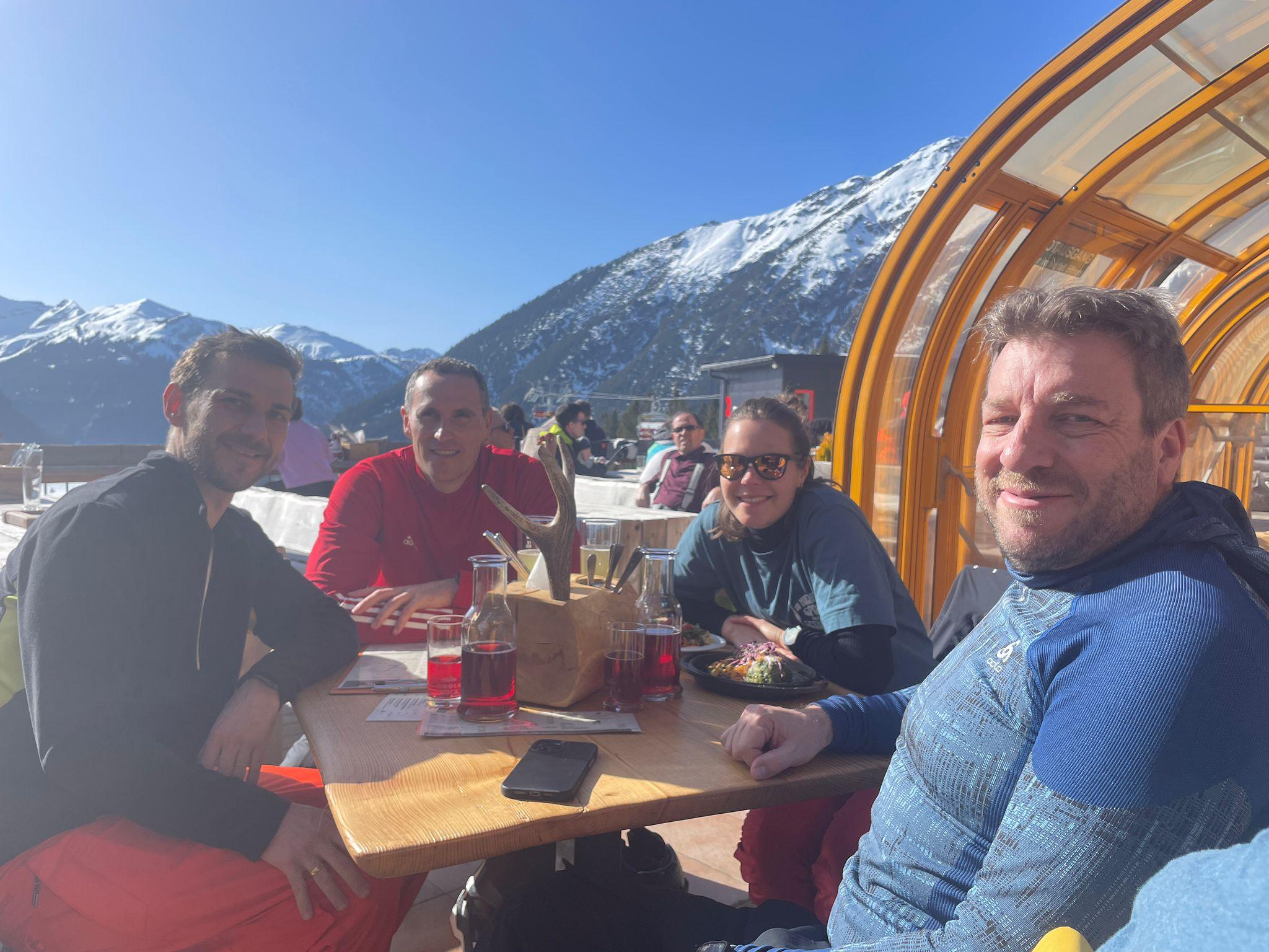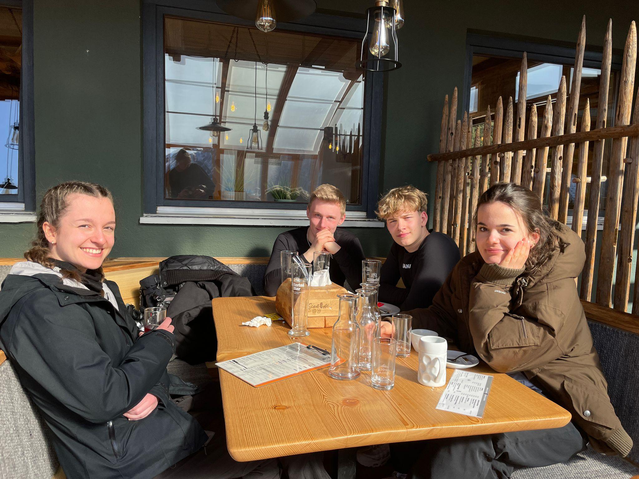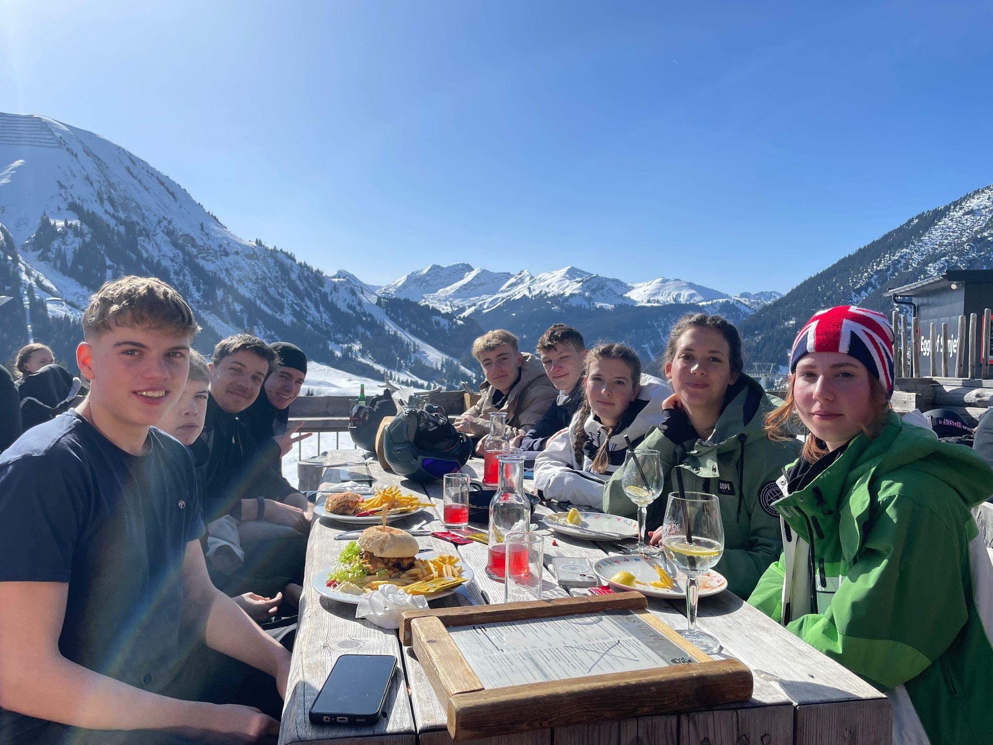 Um 14 Uhr trafen sich alle gemeinsam auf der Hütte, um sich bei Sonnenschein und wunderschöner Aussicht zu stärken. Obwohl der diesjährig wieder gewählte Schülersprecher Lukas Beck leider fehlte, wurden die Teller dennoch leergeputzt.